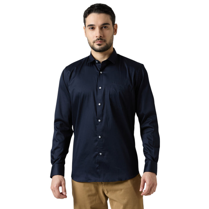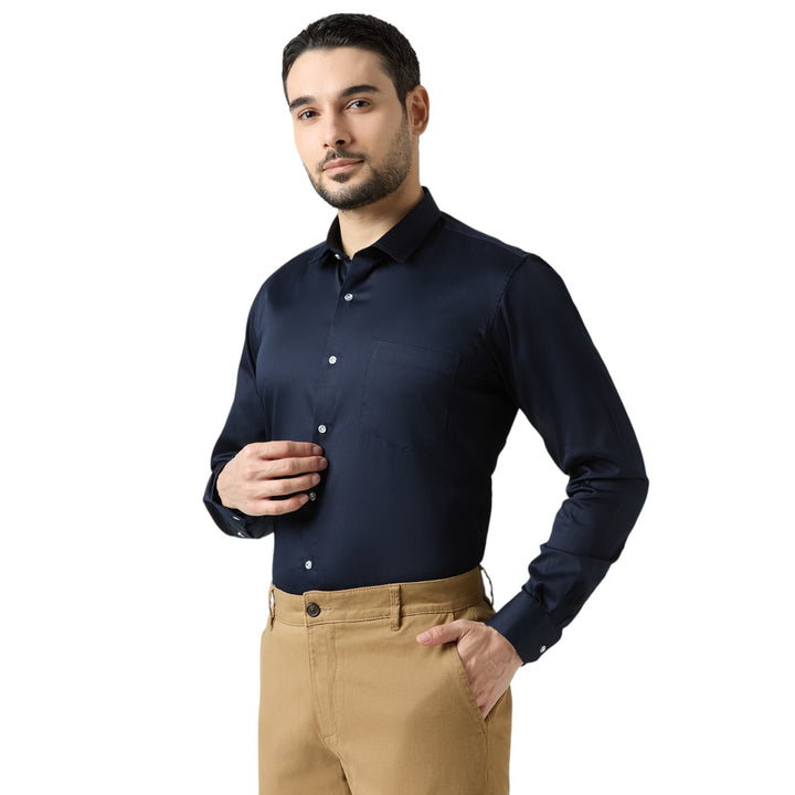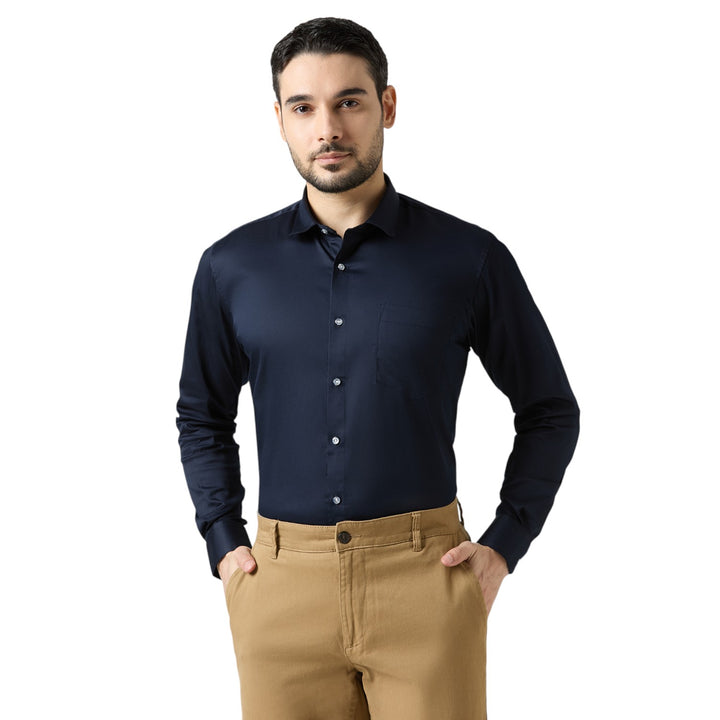 Designed in a slim fit cut, with full sleeves, a classic collar, and a smart chest pocket, this shirt combines modern elegance with everyday practicality. Its soft navy eclipse tone makes it perfect for office wear, business meetings, parties, and formal occasions.