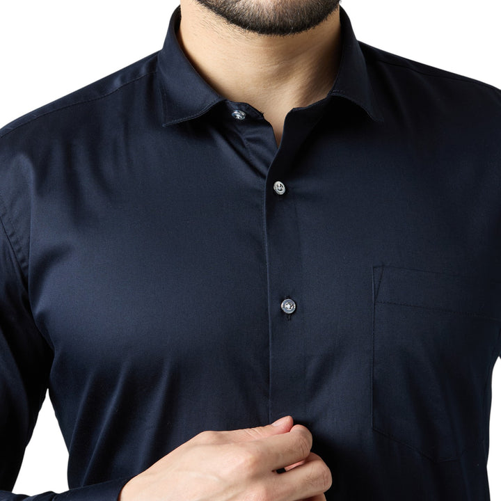Men’s Navy Eclipse Lycra Formal Shirt – Stretchable Slim Fit Office Wear