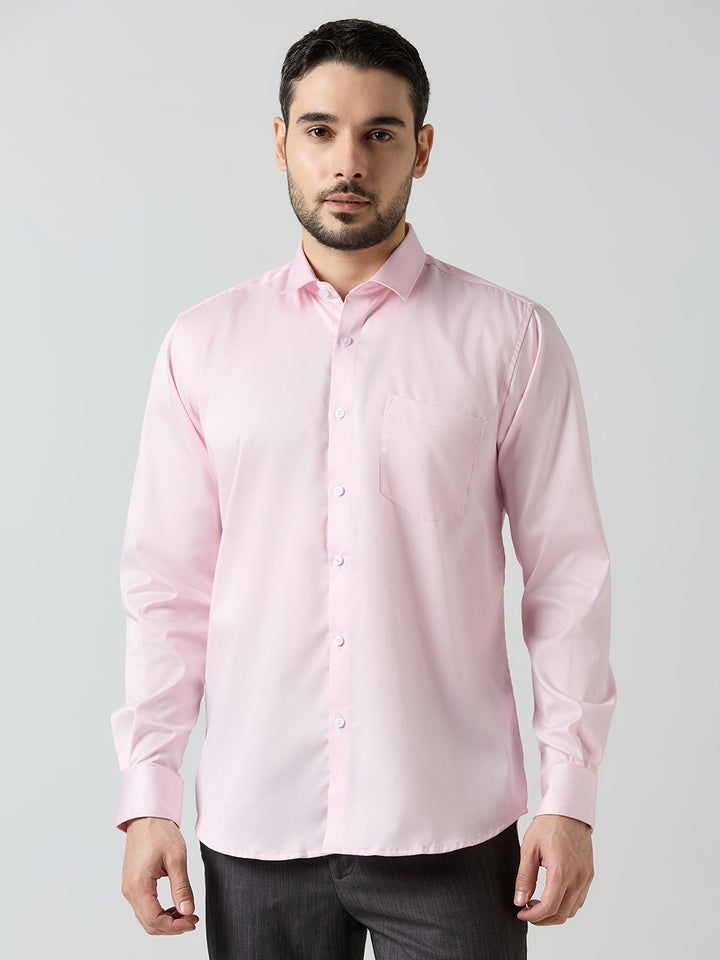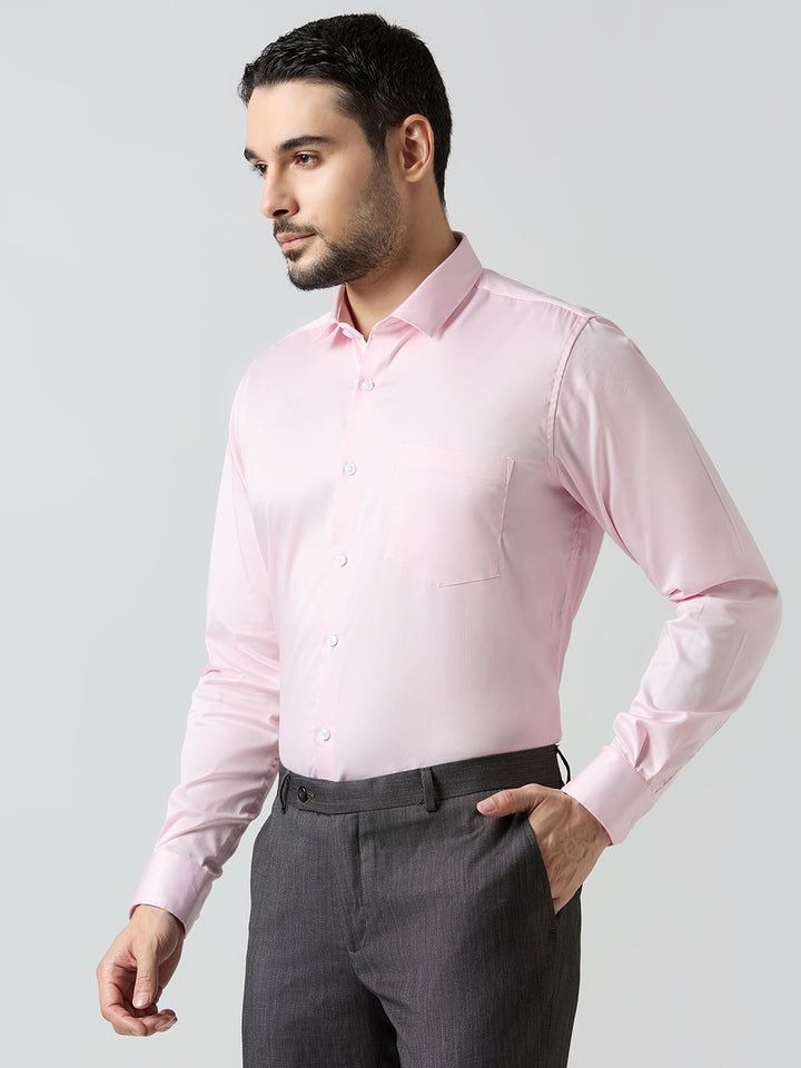 Designed in a slim fit cut, with full sleeves, a classic collar, and a smart chest pocket, this shirt combines modern elegance with everyday practicality. Its soft light pink tone makes it perfect for office wear, business meetings, parties, and formal occasions.