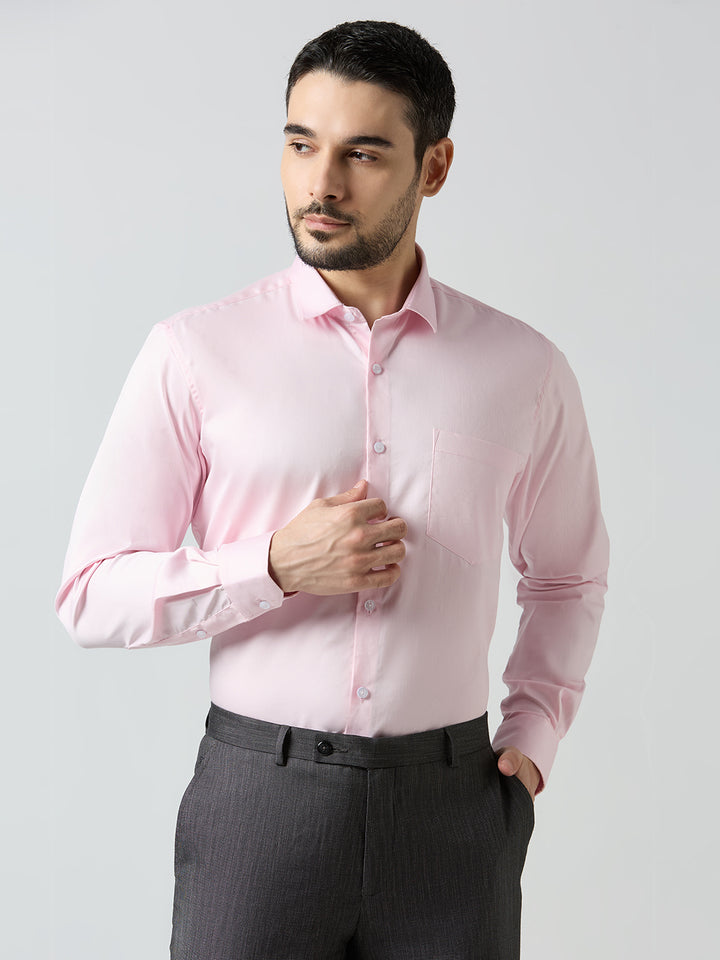 Men’s Light Pink Lycra Formal Shirt – Stretchable Slim Fit Office Wear